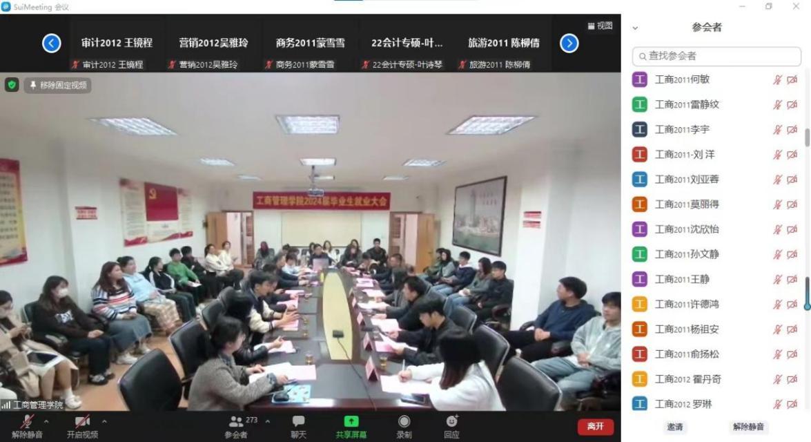 1月9日下午,工商管理学院召开2024届毕业生就业大会,院党委书记陈娟、院长邱吉福、院党委副书记董欣胜、各系负责人、毕业班班主任和辅导员等出席会议,学院2024届全体毕业生通过线上、线下相结合的方式参会。