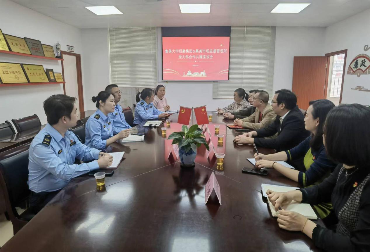 3月27日下午,后勤集团党支部与集美市场监督管理所党支部在饮食中心会议室召开共建座谈会,就春季开学以来我校食堂食品安全工作情况进行沟通交流,并立足学村特色,以支部共建为契机,充分发挥双方党建优势互学互补,深化党建引领,凝聚食安治理合力。