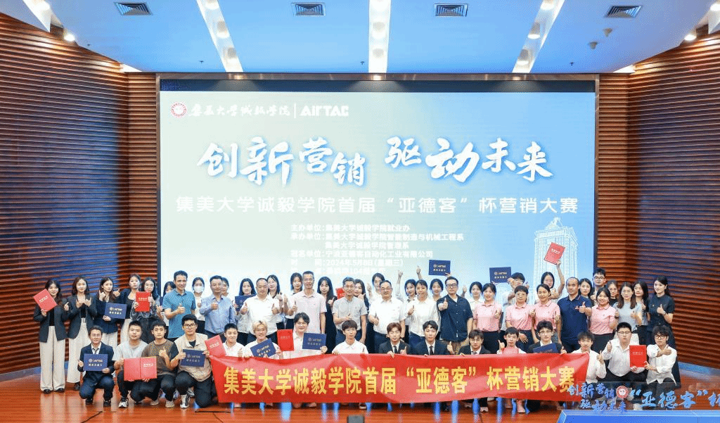 本次“亚德客”杯营销大赛以“创新营销,驱动未来”为主题,由诚毅学院就业指导办公室主办,智能制造与机械工程系、管理系共同承办,宁波亚德客自动化工业有限公司协办。为了进一步巩固和扩大校企合作和营销大赛的成果,本次活动的一、二、三等奖的获奖团队可到宁波亚德客公司参观游学,并获得亚德客公司提供的《就业直通证书》,可于毕业当年加入亚德客公司工作。