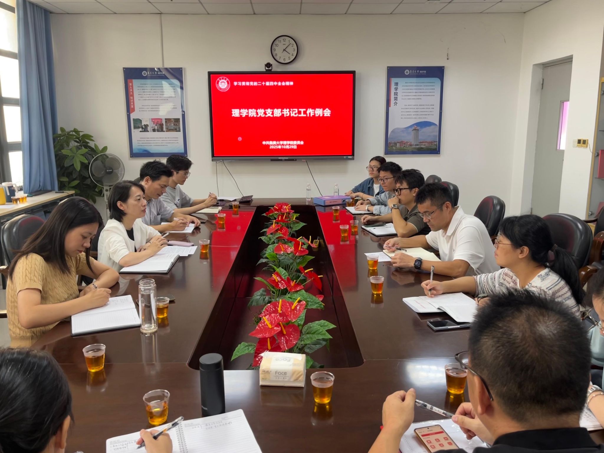 为及时传达和深入学习贯彻中国共产党第二十届中央委员会第四次全体会议精神,近日,理学院通过召开学院党委会、党委理论学习中心组学习会、全院教职工大会、党支部书记工作例会等多种形式,在院内掀起学习宣传贯彻的热潮。