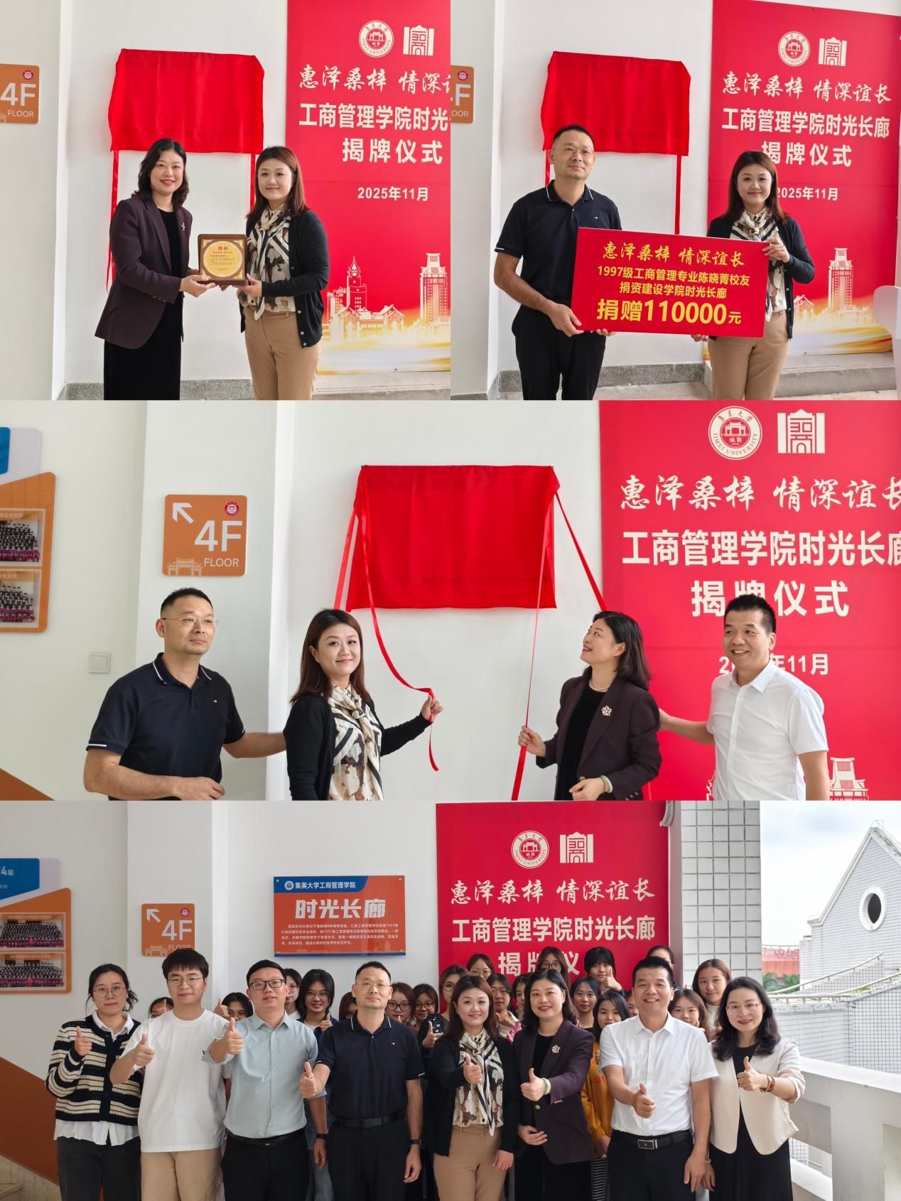 11月18日,工商管理学院“时光长廊”揭牌仪式举行。1997级校友陈晓菁,院党委书记陈娟、党委副书记董欣胜、副院长吴江秋及师生代表共同出席。