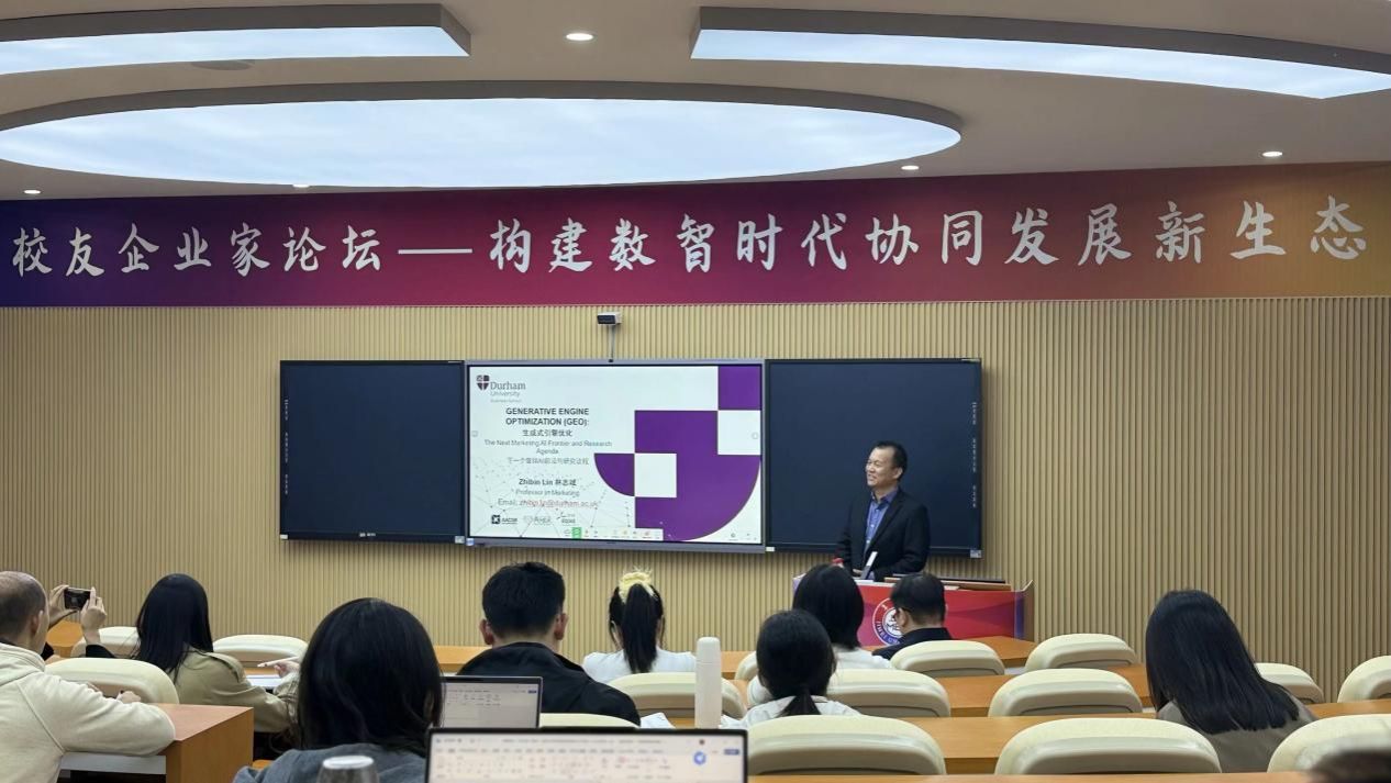 近日,工商管理学院举办“抢占GEO新赛道:AI营销的决胜之地”学术讲座。讲座特邀英国杜伦大学商学院消费者可持续消费研究中心主任林志斌教授担任主讲。林教授在技术与创新、数字营销、交通与旅游管理及国际商务等领域具有深厚的研究积累。